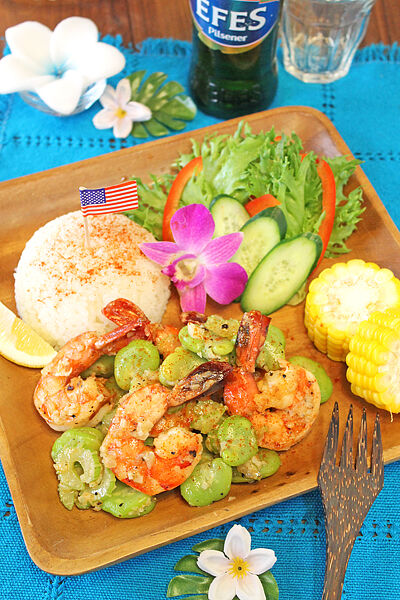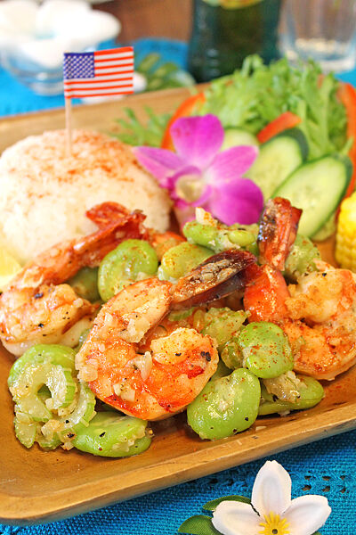 空豆とセロリを加えて、ハワイの思い出のお味・・・