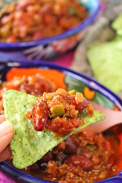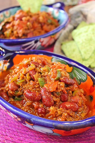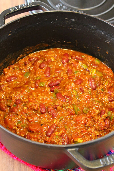 たっぷりのお豆と挽肉をチリ風味のスパイスで煮込んだ