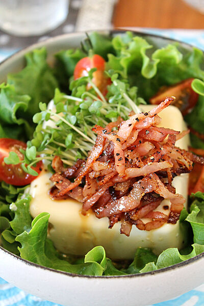 ベーコンのうまみとあっさり胡麻ポン酢でお豆腐も野菜も