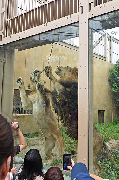 激しい争いのライオンのえさやりを見たり・・・。