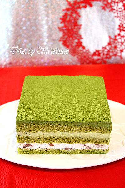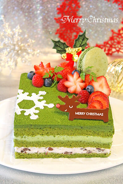 小豆クリーム、抹茶のガナッシュを重ねた濃厚抹茶のクリスマスケーキ!!