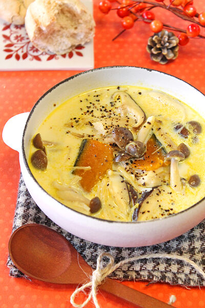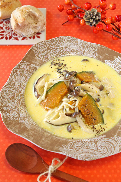 かぼちゃときのこのヘルシー豆乳スープ!!