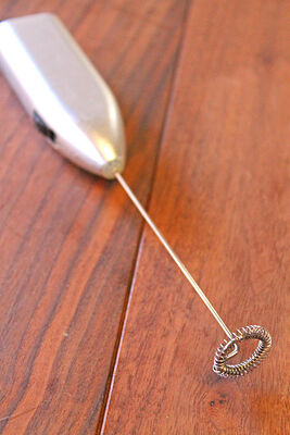 2.牛乳をカップに入れ、電子レンジ500Wで1分加熱し、同じく泡立てる。