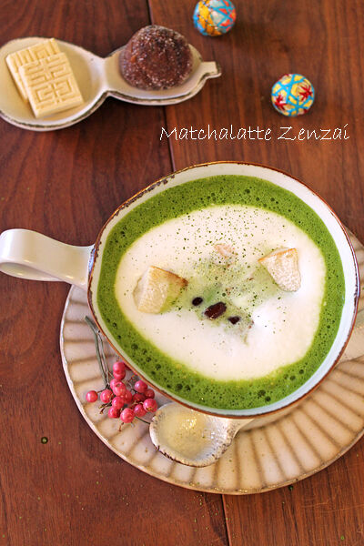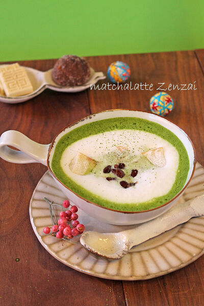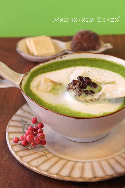 抹茶の渋みにあずきの甘さがおいしいぜんざいです(^^♪