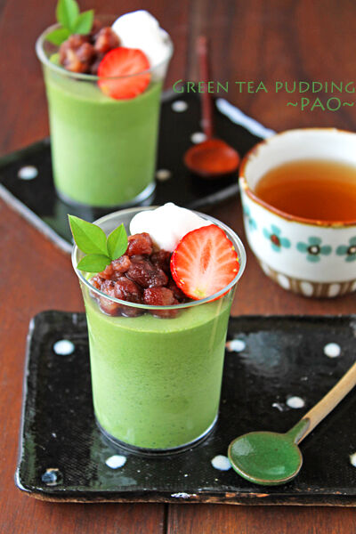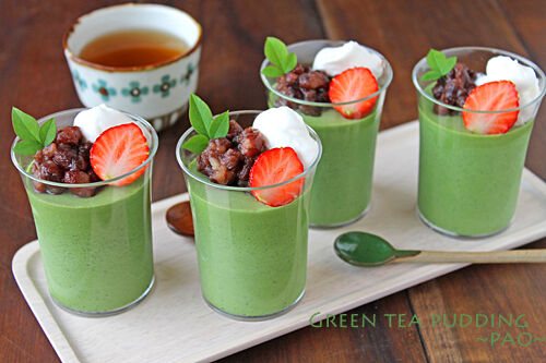 混ぜて冷やすだけの濃厚抹茶ミルクプリンです~♪