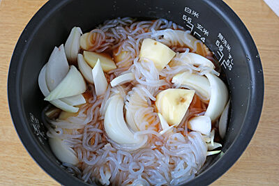 2、炊飯器に※を加えて混ぜ合わせる。