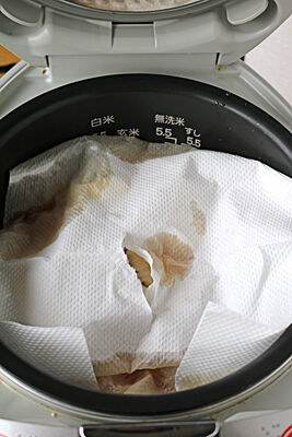 キッチンペーパーがアクや油を吸収してしてくれるので