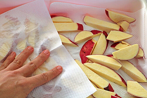 2、しっかりとキッチンペーパーで水気をふきとる。