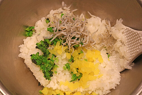 コリコリ触感がおいしい爽やかなおにぎりです。