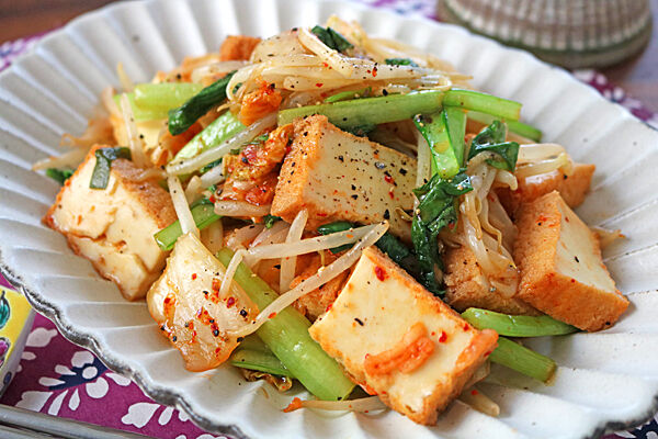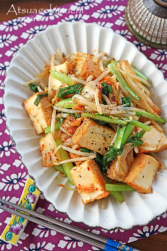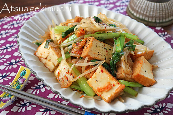 厚揚げとキムチでだしいらず。