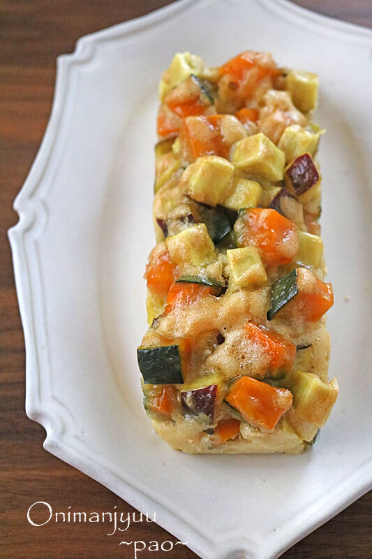 3、オーブンシートを敷いた型、または耐熱容器に入れる。