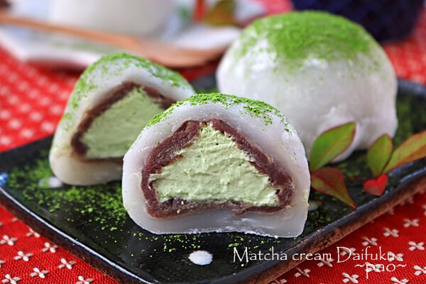 生クリームに砂糖を加えて泡立て、抹茶を加えて