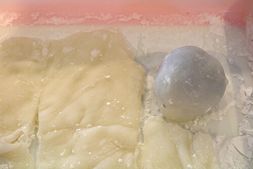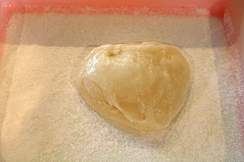 上部にも軽く片栗粉をふりかけ、20cm角くらいに伸ばす。