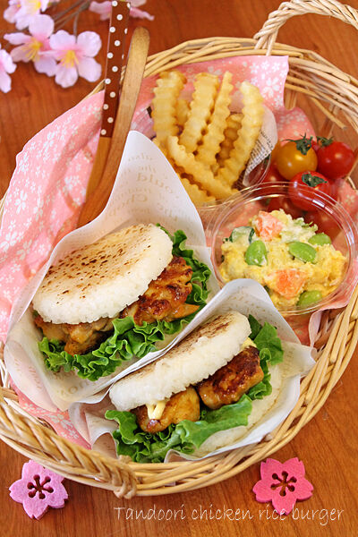 お花見親子弁当☆タンドリーチキンライスバーガー