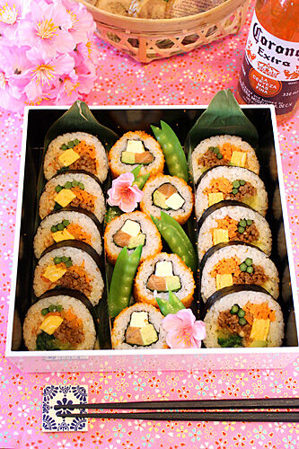 お花見キンバ&カリフォルニアロール弁当☆鶏チャ~シュ~