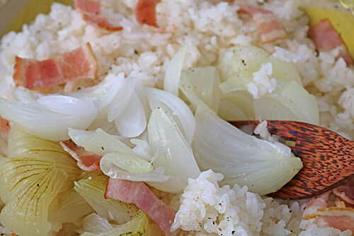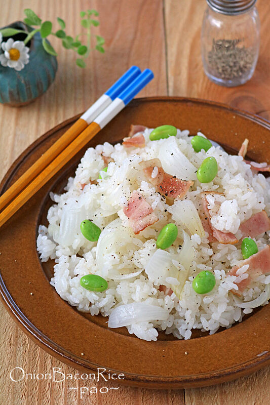 新玉ねぎとベーコンの塩麹ごはんでした~!!