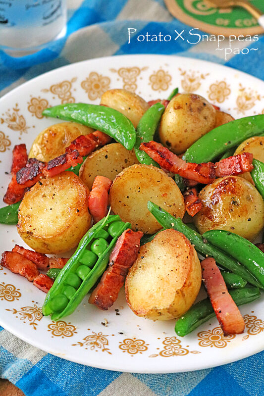カリカリベーコンとスナップエンドウのジャーマンポテト♪