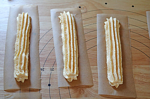 3、星形の口金をつけた絞り袋に生地を入れ、