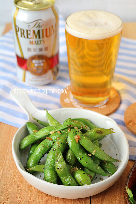 香がでたら塩ゆでした枝豆を炒め、ナンプラー、塩胡椒、で