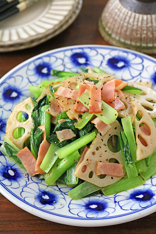小松菜はだしの出る食材と炒めるとおいしいですね~!!