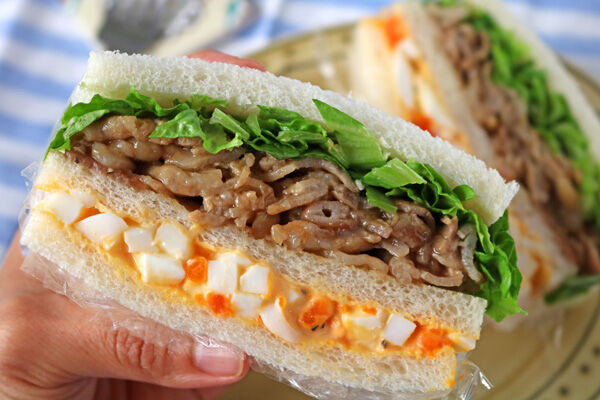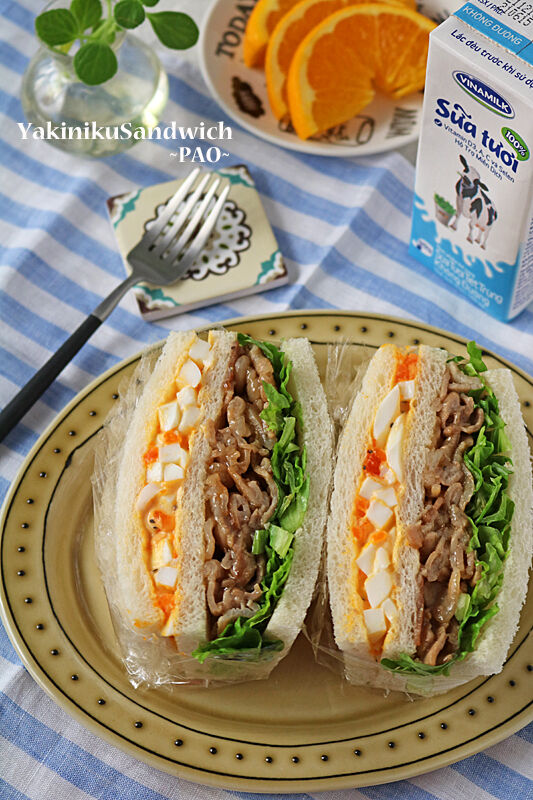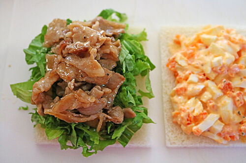 今日は焼肉と卵マヨを一緒にサンドせずに