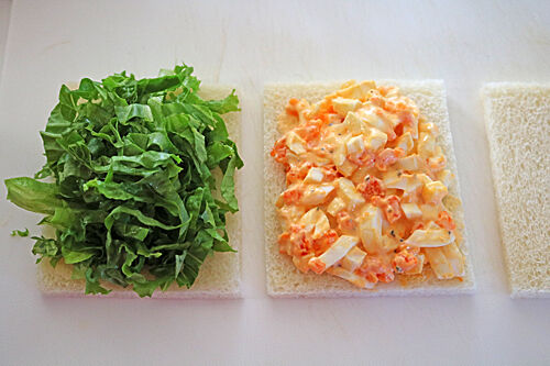 サンドウィッチ用パン1枚に卵マヨを乗せ、