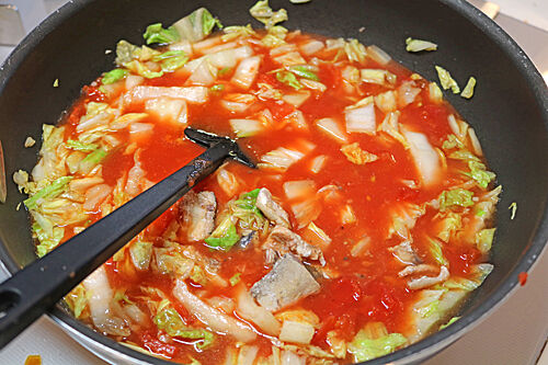 3、白菜がしんなりしたら、※を加えて蓋をして