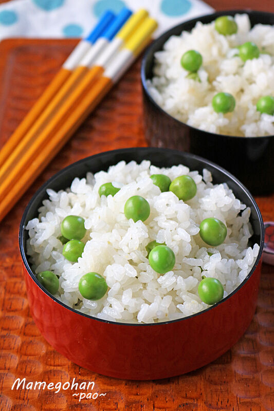 我が家は塩ゆでしたグリンピースのゆで汁でごはんを炊いて