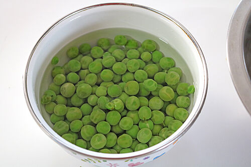 2、グリンピースは少量のゆで汁にぬるま湯を加えたもの