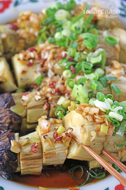 茄子がペロリと食べられちゃうやみつき茄子です。