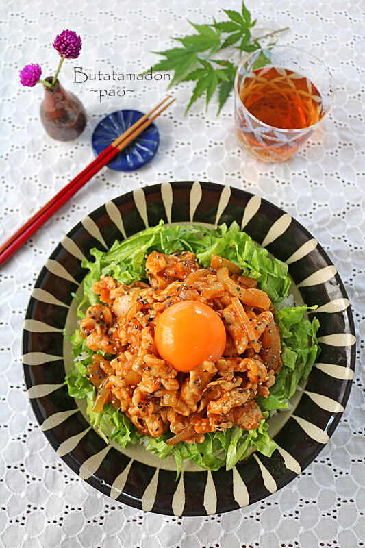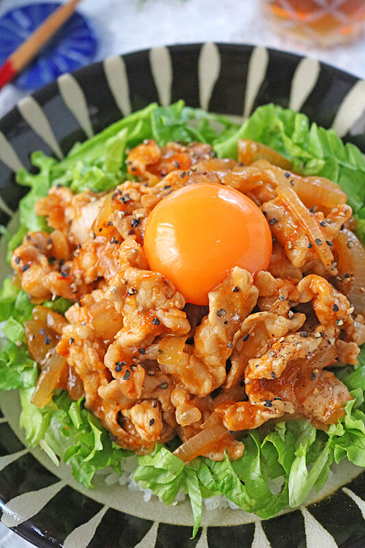 玉ねぎたっぷり豚肉の旨辛どんぶり♪