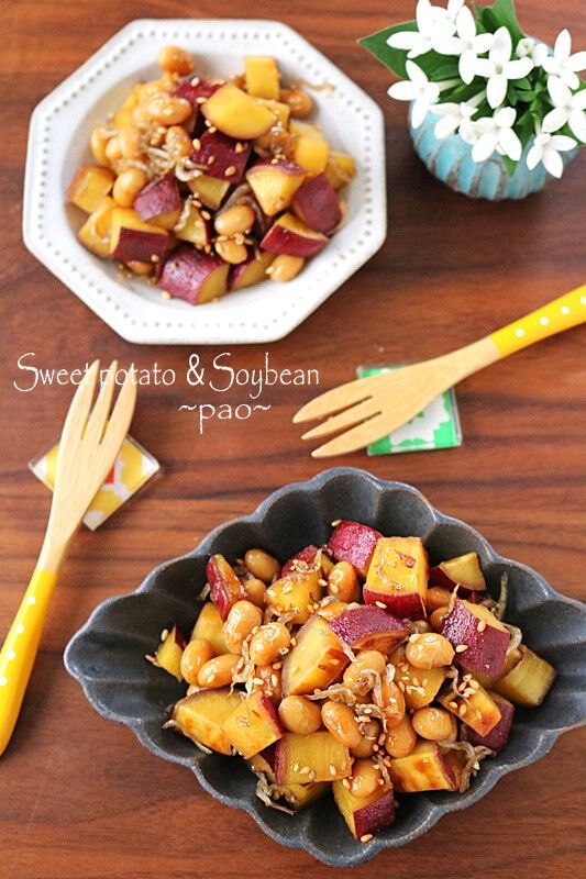 大豆とじゃこを加えたさつまいものほっくり炒め♪
