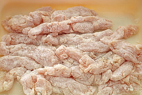 5、バットに小麦粉、片栗粉を混ぜ合わせ、