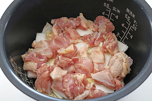 2、鶏肉は小さめ一口大に切り、◎を揉みこみ、
