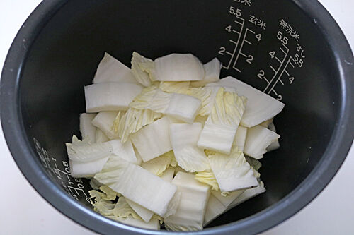 芯の部分を炊飯器の底に入れる。