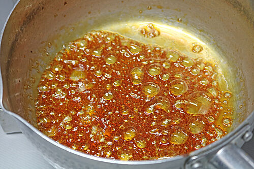 1、小鍋にグラニュー糖と水を加えて中火で加熱する。