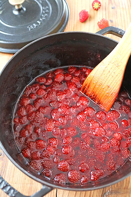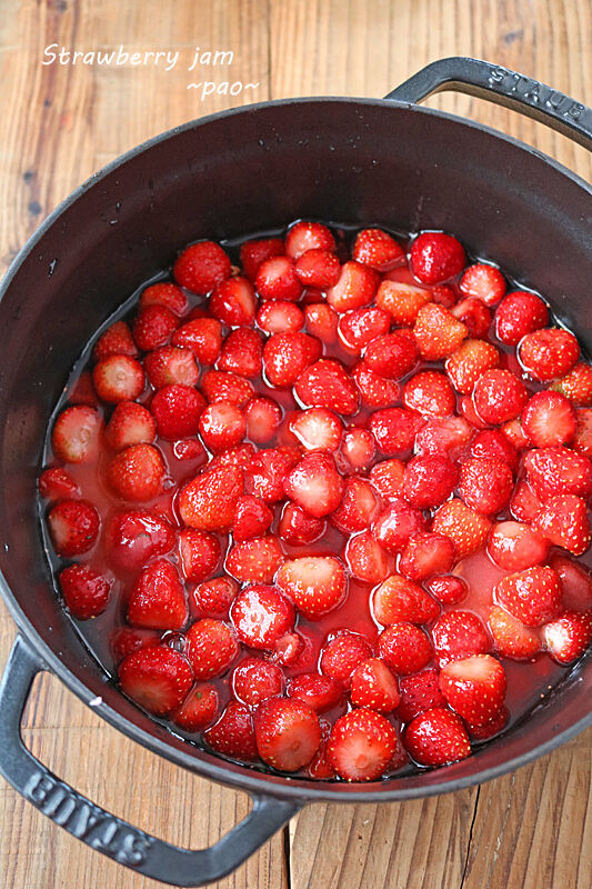 1、苺にグラニュー糖を加えて混ぜ合わせる。