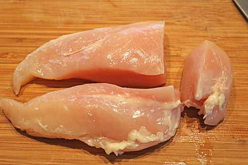 1、鶏むね肉は3等分に切り、繊維を断ち切るように