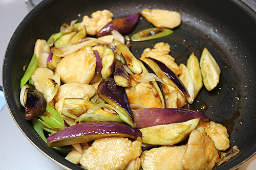 鶏むね肉と茄子のあっさり生姜焼きでした~!!