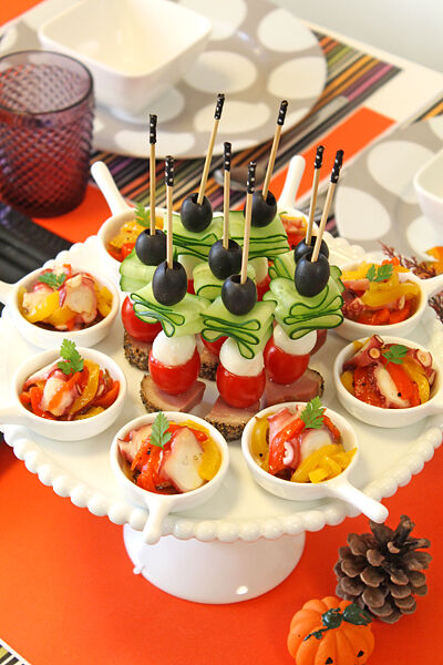 きゅうりや生ハムはをぐるぐる~と丸めたり