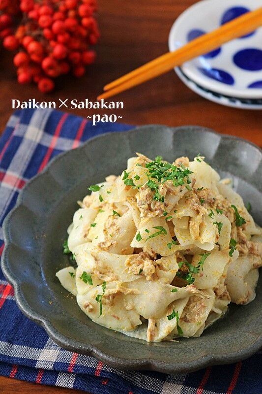 大根1/2本ペロリ♪鯖缶と大根のカレーサラダ♪