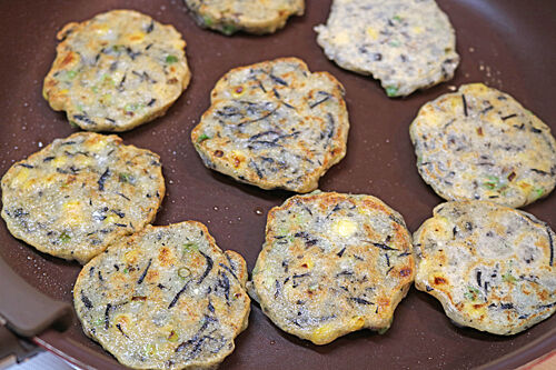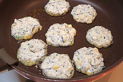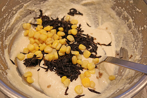 3、水気をしっかりきった生ひじき、コーン缶、ネギを加えて
