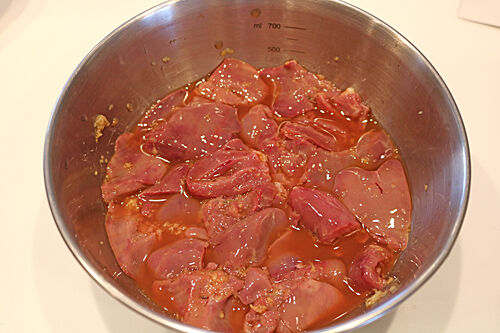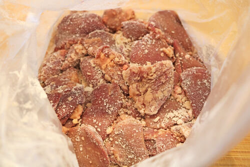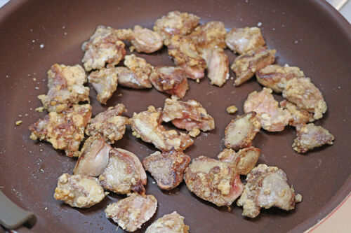 4,フライパンにサラダ油を熱し、3のレバーを焼く。
