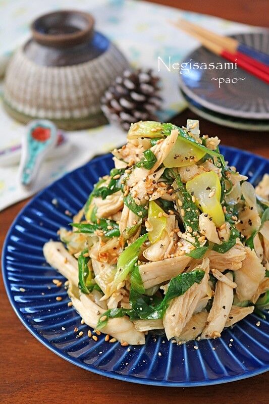 レンジでもっちりささみと下仁田ねぎの中華和え♪