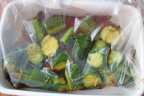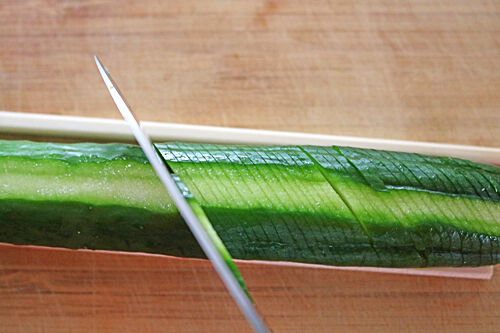 斜めに2/3くらいの深さに、細かく切り込みを入れる。