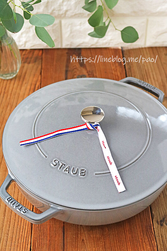 この持ち手のSTAUBも文字が、グレーは