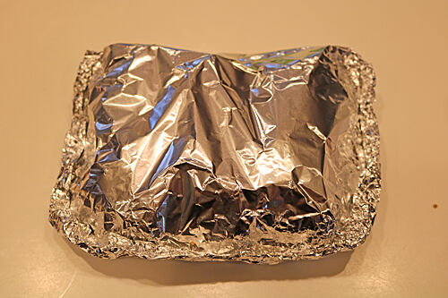 4.アルミホイルを折りたたむように手前で合わせて丸める。