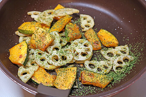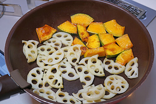 フライパンでパパっとれんこんとかぼちゃを