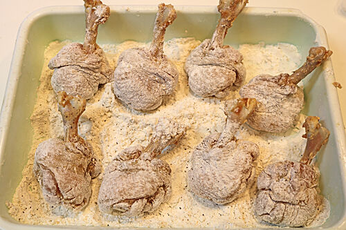4.バットに小麦粉と片栗粉、こしょうを加えて混ぜ合わせる。
