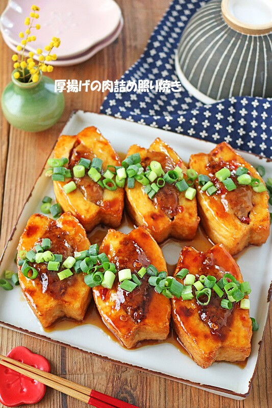 少ないお肉で簡単!厚揚げの肉詰め照り焼き♪